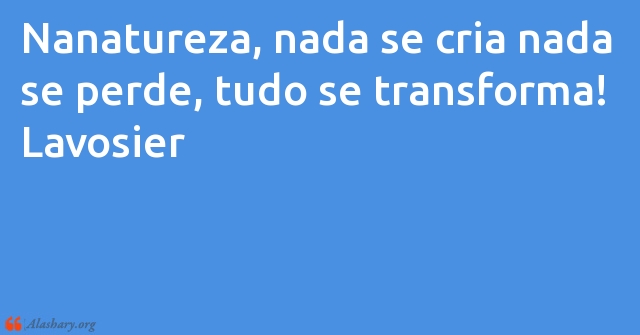 Lavosier: Nanatureza, nada se cria nada se perde, tudo se tr