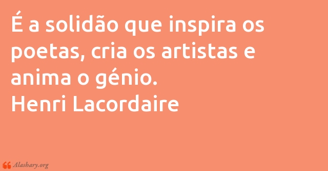 É a solidão que inspira os poetas, cria os artistas e anima o génio.