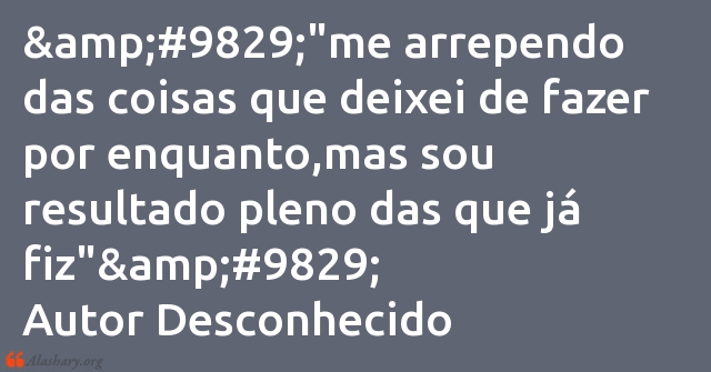 ♥"me arrependo das coisas que deixei de fazer por enquanto,mas sou resultado pleno das que já fiz"♥ Autor Desconhecido