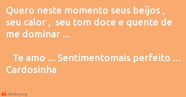 Quero neste momento seus beijos , seu calor , seu tom doce e quente de me dominar ...