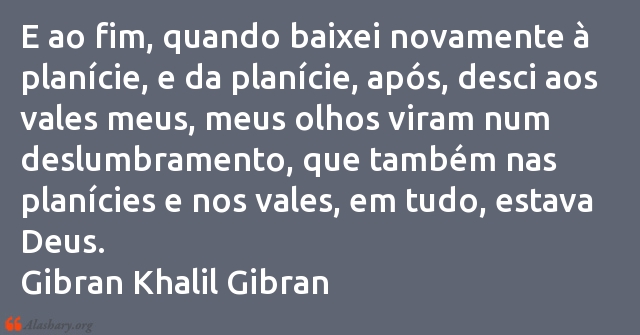 E ao fim, quando baixei novamente à planície, e da planície, após, desci aos vales meus, meus olhos viram num deslumbramento, que também nas planícies e nos vales, em tudo, estava Deus.