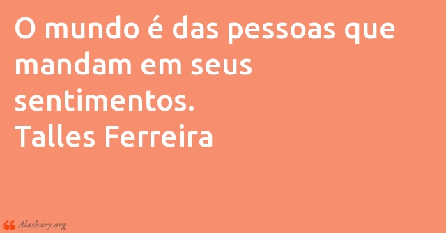 O mundo é das pessoas que mandam em seus sentimentos. Talles Ferreira