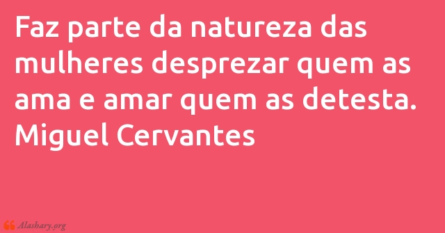 Faz parte da natureza das mulheres desprezar quem as ama e amar quem as detesta. Miguel Cervantes