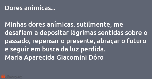 Minhas dores anímicas, sutilmente, me desafiam a depositar lágrimas sentidas sobre o passado, repensar o presente, abraçar o futuro e seguir em busca da luz perdida.