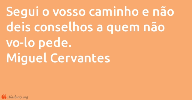 Segui o vosso caminho e não deis conselhos a quem não vo-lo pede. Miguel Cervantes