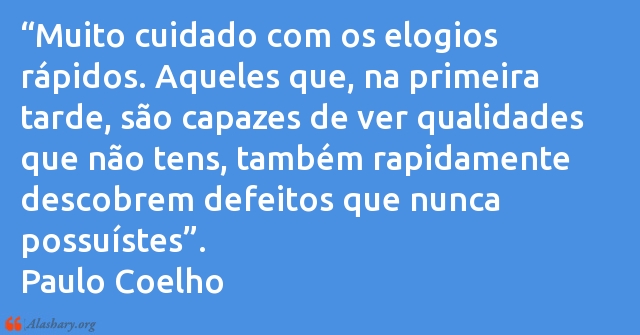 “Muito cuidado com os elogios rápidos. Aqueles que, na primeira tarde, são capazes de ver qualidades que não tens, também rapidamente descobrem defeitos que nunca possuístes”.