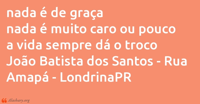 nada é de graça nada é muito caro ou pouco a vida sempre dá o troco João Batista dos Santos - Rua Amapá - LondrinaPR