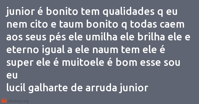 junior é bonito tem qualidades q eu nem cito e taum bonito q todas caem aos seus pés ele umilha ele brilha ele e eterno igual a ele naum tem ele é super ele é muitoele é bom esse sou eu