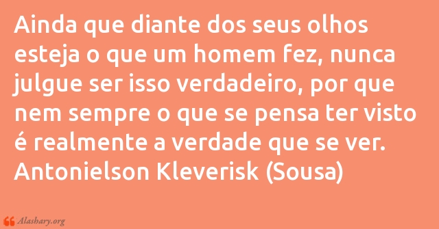 Ainda que diante dos seus olhos esteja o que um homem fez, nunca julgue ser isso verdadeiro, por que nem sempre o que se pensa ter visto é realmente a verdade que se ver.