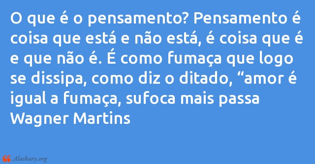 O que é o pensamento? Pensamento é coisa que está e não está, é coisa que é e que não é. É como fumaça que logo se dissipa, como diz o ditado, “amor é igual a fumaça, sufoca mais passa