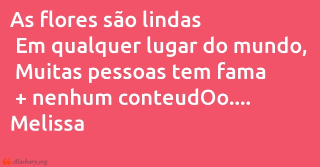 As flores são lindas Em qualquer lugar do mundo, Muitas pessoas tem fama + nenhum conteudOo.... Melissa