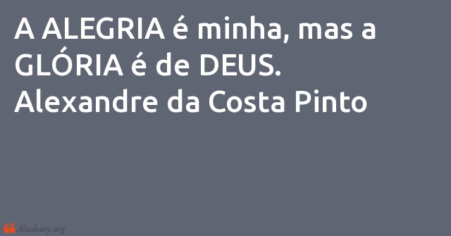 A ALEGRIA é minha, mas a GLÓRIA é de DEUS. Alexandre da Costa Pinto
