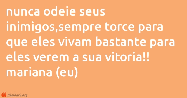 nunca odeie seus inimigos,sempre torce para que eles vivam bastante para eles verem a sua vitoria!! mariana (eu)