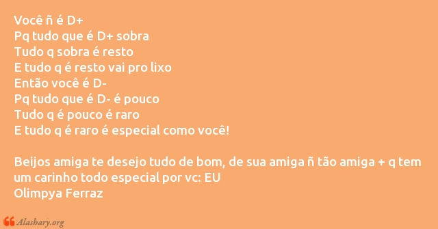 Olimpya Ferraz: Você ñ é D+ Pq tudo que é D+ sobra Tudo q sobr
