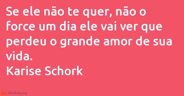 Se ele não te quer, não o force um dia ele vai ver que perdeu o grande amor de sua vida. Karise Schork