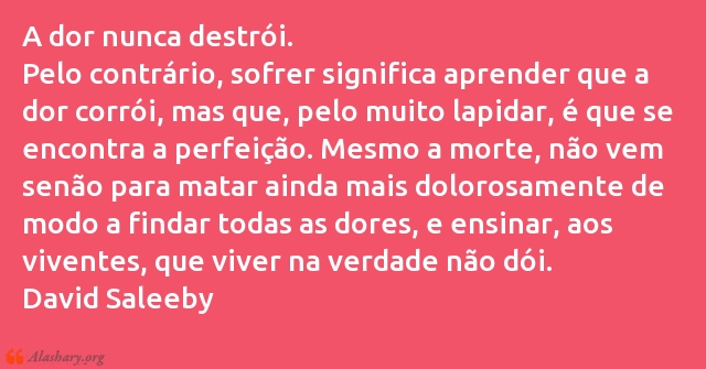 Pelo contrário, sofrer significa aprender que a dor corrói, mas que, pelo muito lapidar, é que se encontra a perfeição. Mesmo a morte, não vem senão para matar ainda mais dolorosamente de modo a findar todas as dores, e ensinar, aos viventes, que viver na verdade não dói.