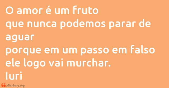 O amor é um fruto que nunca podemos parar de aguar porque em um passo em falso ele logo vai murchar. Iuri