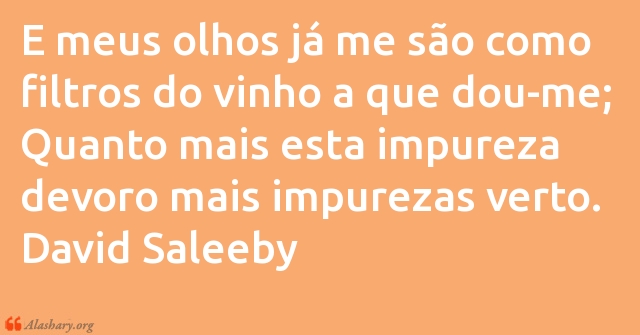 E meus olhos já me são como filtros do vinho a que dou-me; Quanto mais esta impureza devoro mais impurezas verto. David Saleeby