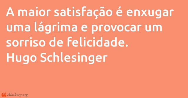 A maior satisfação é enxugar uma lágrima e provocar um sorriso de felicidade. Hugo Schlesinger