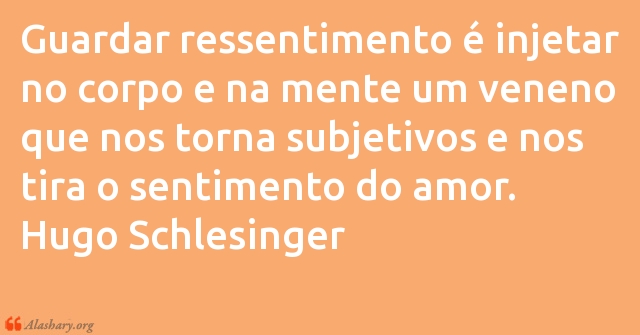 Guardar ressentimento é injetar no corpo e na mente um veneno que nos torna subjetivos e nos tira o sentimento do amor. Hugo Schlesinger