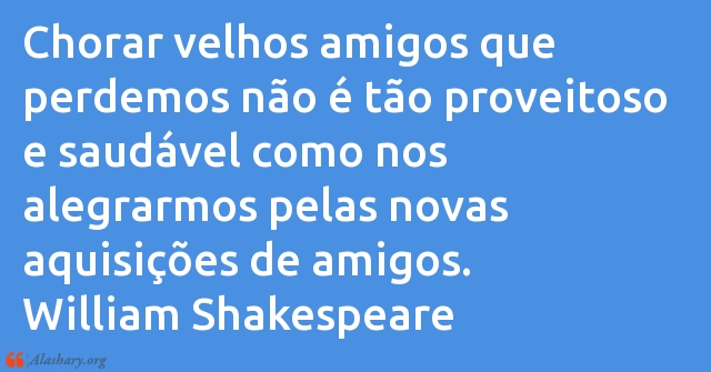 Chorar velhos amigos que perdemos não é tão proveitoso e saudável como nos alegrarmos pelas novas aquisições de amigos.