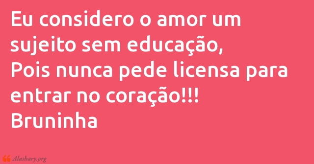 Eu considero o amor um sujeito sem educação, Pois nunca pede licensa para entrar no coração!!! Bruninha