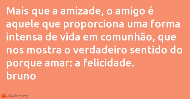 Mais que a amizade, o amigo é aquele que proporciona uma forma intensa de vida em comunhão, que nos mostra o verdadeiro sentido do porque amar: a felicidade. bruno