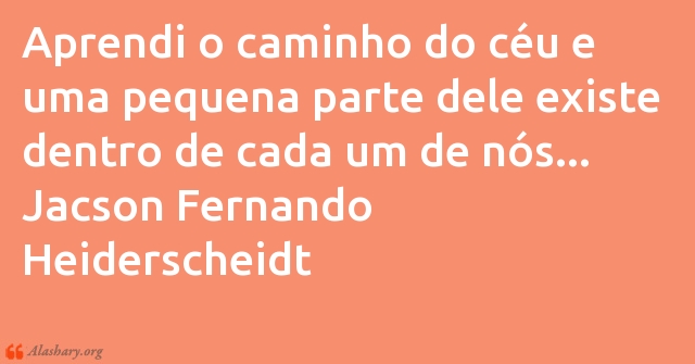 Aprendi o caminho do céu e uma pequena parte dele existe dentro de cada um de nós... Jacson Fernando Heiderscheidt