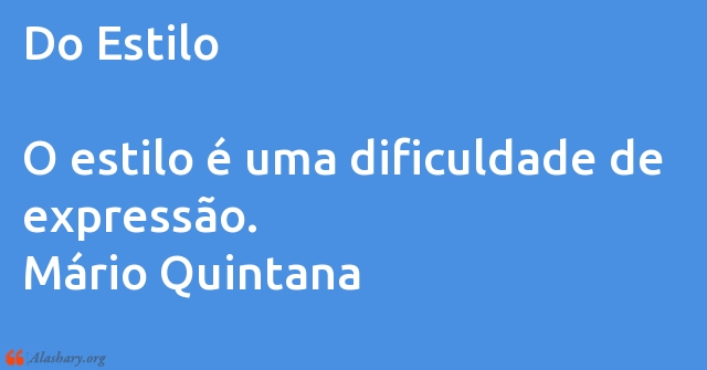 Do Estilo O estilo é uma dificuldade de expressão. Mário Quintana