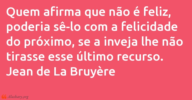 Quem afirma que não é feliz, poderia sê-lo com a felicidade do próximo, se a inveja lhe não tirasse esse último recurso.