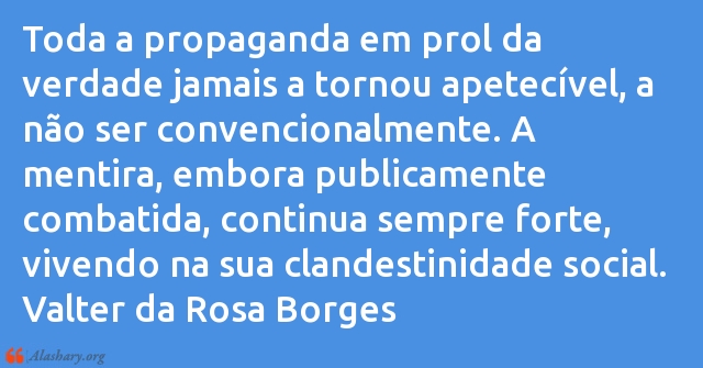 Toda a propaganda em prol da verdade jamais a tornou apetecível, a não ser convencionalmente. A mentira, embora publicamente combatida, continua sempre forte, vivendo na sua clandestinidade social. Valter da Rosa Borges