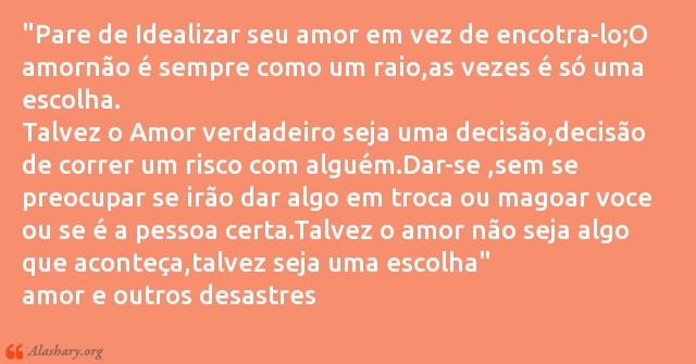 "Pare de Idealizar seu amor em vez de encotra-lo;O amornão é sempre como um raio,as vezes é só uma escolha.