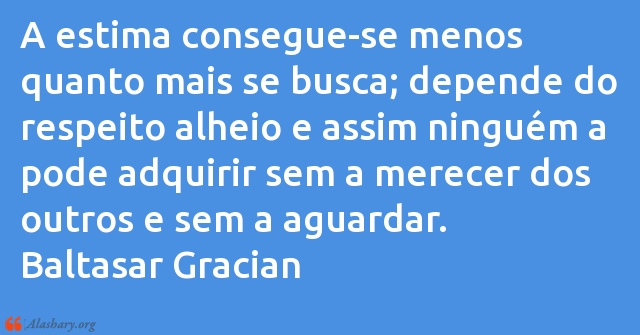 A estima consegue-se menos quanto mais se busca; depende do respeito alheio e assim ninguém a pode adquirir sem a merecer dos outros e sem a aguardar. Baltasar Gracian
