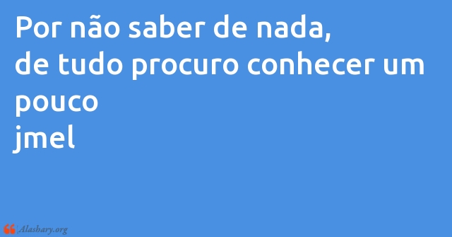 jmel: Por não saber de nada, de tudo procuro conhecer u