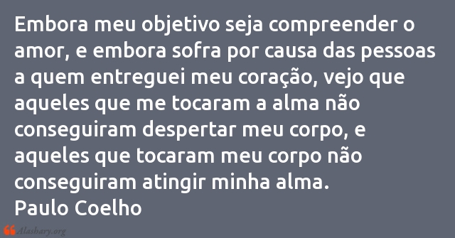 Embora meu objetivo seja compreender o amor, e embora sofra por causa das pessoas a quem entreguei meu coração, vejo que aqueles que me tocaram a alma não conseguiram despertar meu corpo, e aqueles que tocaram meu corpo não conseguiram atingir minha alma.