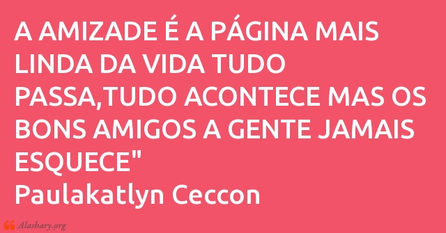 A AMIZADE É A PÁGINA MAIS LINDA DA VIDA TUDO PASSA,TUDO ACONTECE MAS OS BONS AMIGOS A GENTE JAMAIS ESQUECE" Paulakatlyn Ceccon