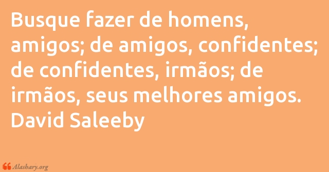 Busque fazer de homens, amigos; de amigos, confidentes; de confidentes, irmãos; de irmãos, seus melhores amigos. David Saleeby