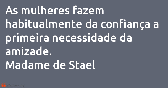 As mulheres fazem habitualmente da confiança a primeira necessidade da amizade. Madame de Stael