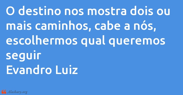 O destino nos mostra dois ou mais caminhos, cabe a nós, escolhermos qual queremos seguir Evandro Luiz