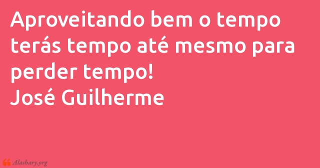 Aproveitando bem o tempo terás tempo até mesmo para perder tempo! José Guilherme