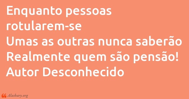 Enquanto pessoas rotularem-se Umas as outras nunca saberão Realmente quem são pensão! Autor Desconhecido