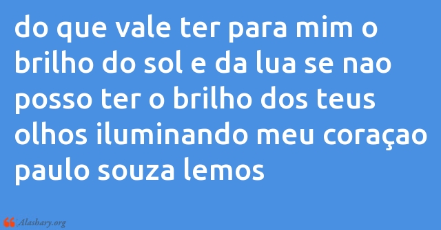 do que vale ter para mim o brilho do sol e da lua se nao posso ter o brilho dos teus olhos iluminando meu coraçao