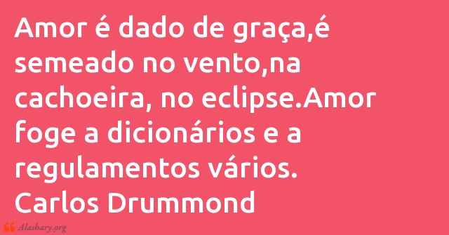 Amor é dado de graça,é semeado no vento,na cachoeira, no eclipse.Amor foge a dicionários e a regulamentos vários.