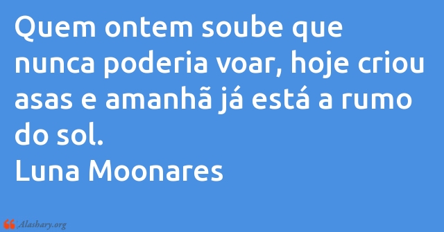 Quem ontem soube que nunca poderia voar, hoje criou asas e amanhã já está a rumo do sol. Luna Moonares