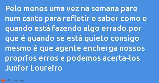 Pelo menos uma vez na semana pare num canto para refletir e saber como e quando está fazendo algo errado.por que é quando se está quieto consigo mesmo é que agente encherga nossos proprios erros e podemos acerta-los