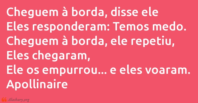 Cheguem à borda, disse ele Eles responderam: Temos medo. Cheguem à borda, ele repetiu, Eles chegaram, Ele os empurrou... e eles voaram. Apollinaire