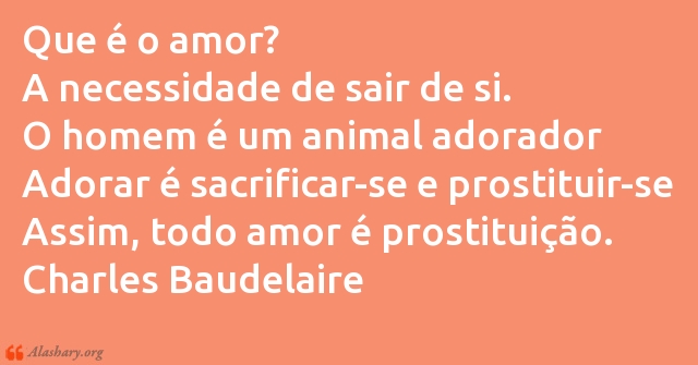 Que é o amor? A necessidade de sair de si. O homem é um animal adorador Adorar é sacrificar-se e prostituir-se Assim, todo amor é prostituição. Charles Baudelaire
