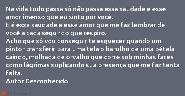 Na vida tudo passa só não passa essa saudade e esse amor imenso que eu sinto por você.