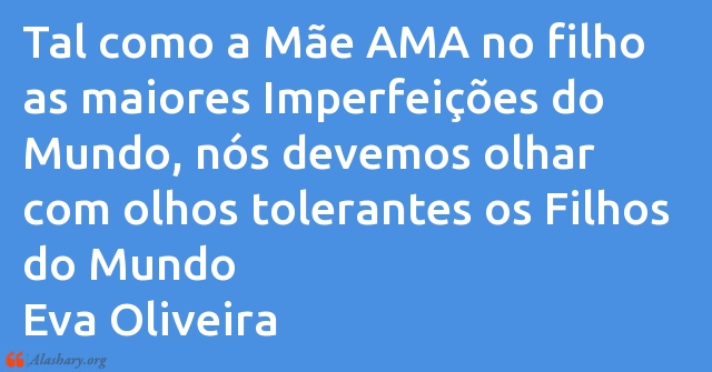 Tal como a Mãe AMA no filho as maiores Imperfeições do Mundo, nós devemos olhar com olhos tolerantes os Filhos do Mundo Eva Oliveira