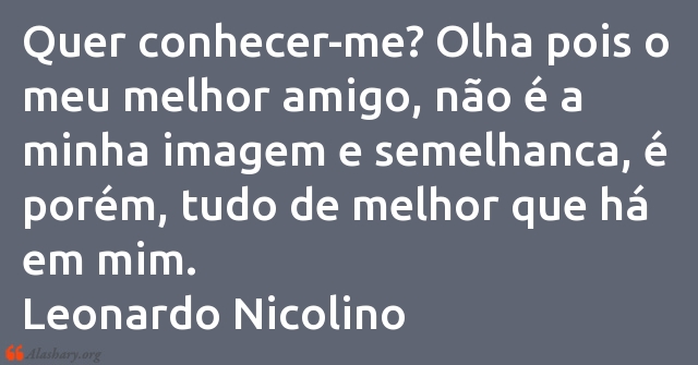 Quer conhecer-me? Olha pois o meu melhor amigo, não é a minha imagem e semelhanca, é porém, tudo de melhor que há em mim.